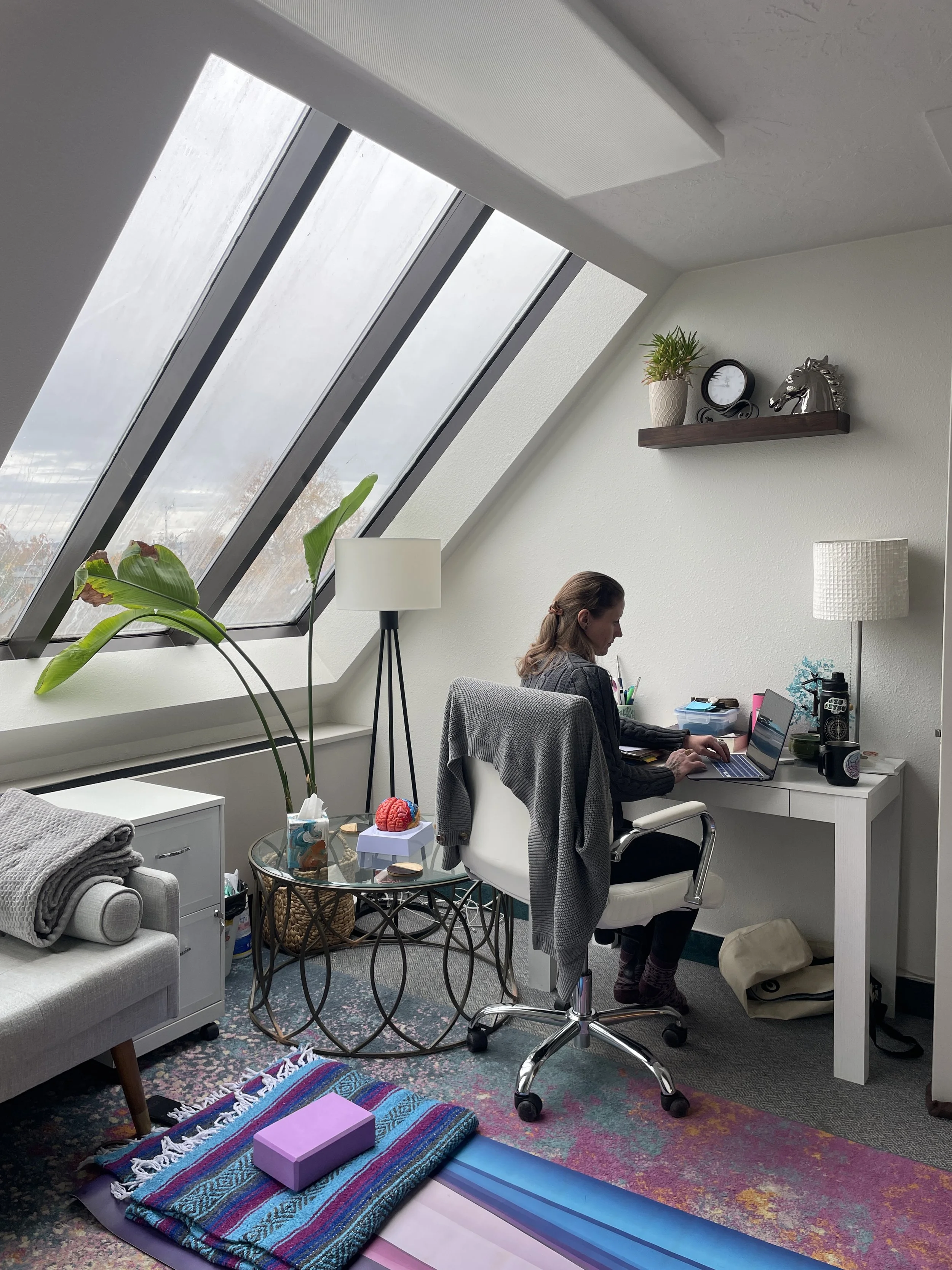 Our integrative wellness sessions differ from studio yoga because the goal is not to learn advanced poses, instead the offerings are practical, personalized tools for self-regulation and relief. While psychotherapy often focuses on clinical diagnosis and talk-based treatment of mental disorders, our approach uses the therapeutic practices of yoga—including movement, breath, meditation, and philosophy—as a potent skill-building method. This empowers you to actively address and alleviate discomfort, chronic pain, and stress in your current life. We commit to meeting you exactly where you are and supporting you as you navigate your own path to sustained well-being. Providing accountability, support, personalized and unique offerings, with handouts and recordings.